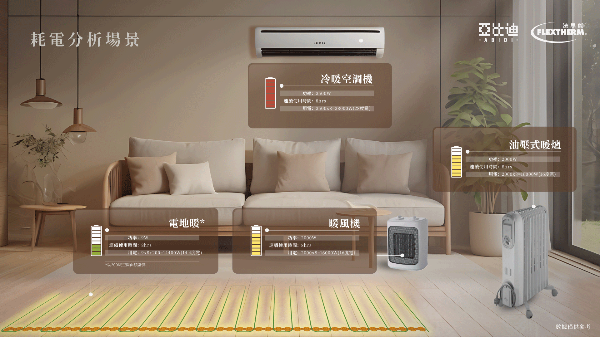從地面釋放熱力,地面及室内物件均匀受熱,感覺舒適、自然。